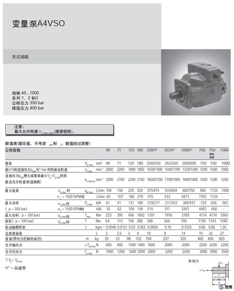 力士樂軸向柱塞變量泵 A4VSO 說明:
