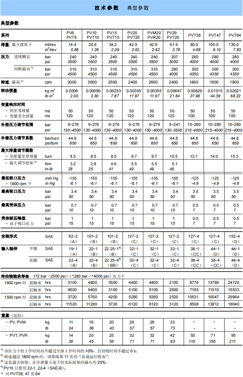 PV 系列泵是可變排量開路活塞泵,其設(shè)計(jì)重點(diǎn)是運(yùn)行經(jīng)濟(jì)性。這些用于開環(huán)操作的軸向柱塞泵適用于 PVT 系列配置中的后驅(qū)動(dòng)。PV 泵的排量為 0.88 至 7.93 cu。英寸/轉(zhuǎn)。(14,4 至 130,0 cc/rev.),連續(xù)工作壓力高達(dá) 4000 psi (280 bar):泵可配備壓力補(bǔ)償器、可通風(fēng)補(bǔ)償器、負(fù)載感應(yīng)或功率限制控制。