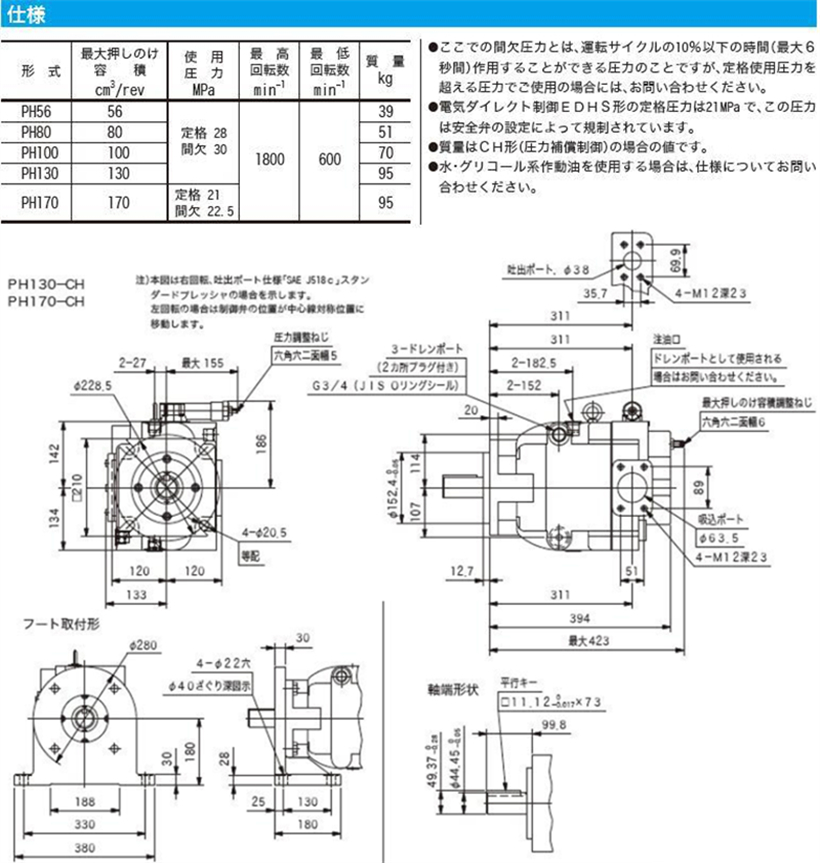 東京計器柱塞泵PH系列:PH80、PH100、PH130、PH170。